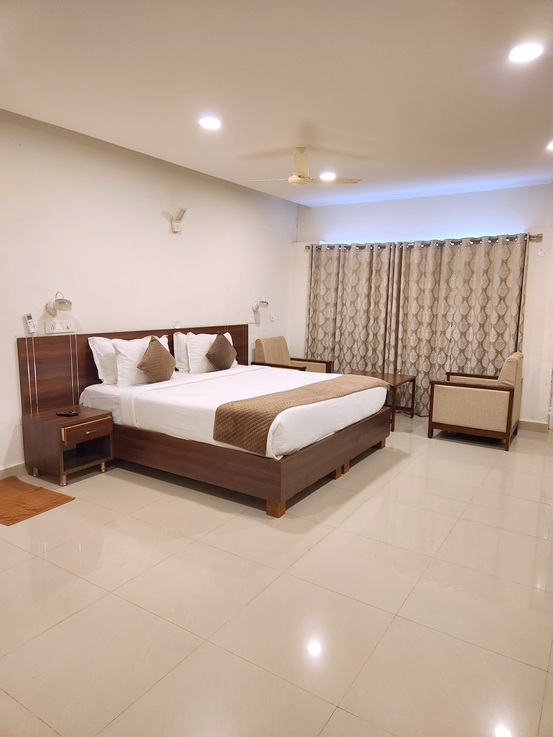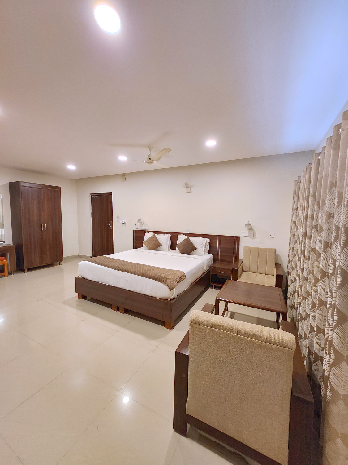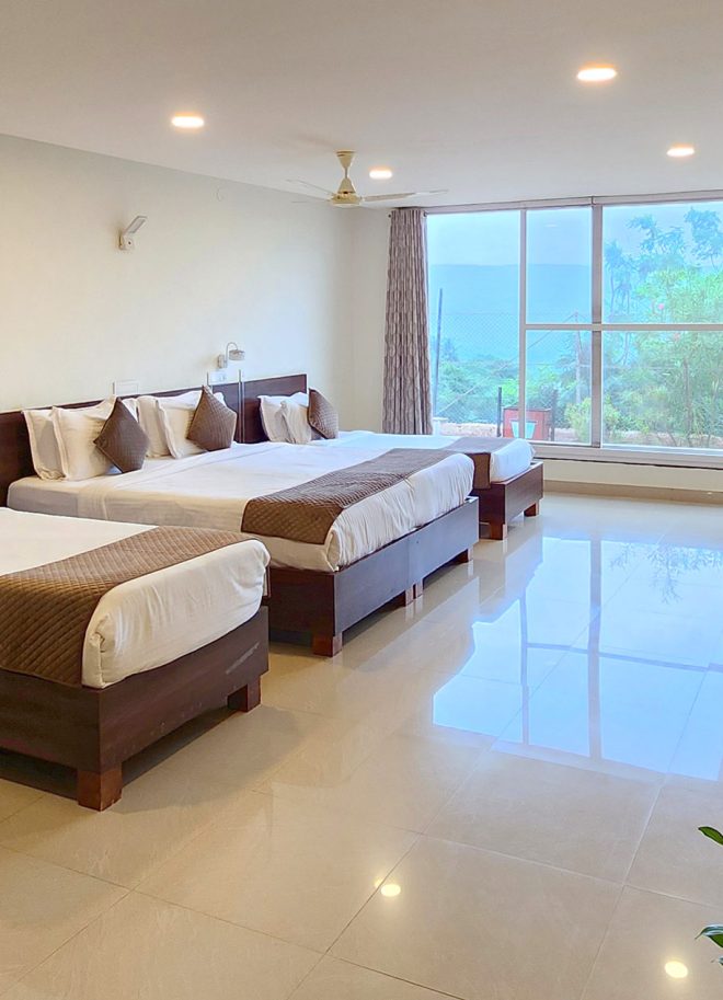 Experience pure comfort in our Premium Room at Hilltop Mrugavani Srisailam, a serene hilltop escape with breathtaking views of the Srisailam Temple. This elegantly designed room features modern amenities, including air conditioning, a flat-screen TV, a comfortable sofa, a work desk, and a private bathroom, ensuring an indulgent stay. Relax amidst nature's beauty, unwind in the tranquil ambiance, and enjoy world-class dining just moments away. Perfect for relaxation or spiritual reflection, the Premium Room offers a seamless blend of luxury and peaceful retreat in this scenic, picturesque setting—a true getaway to elevate your stay.